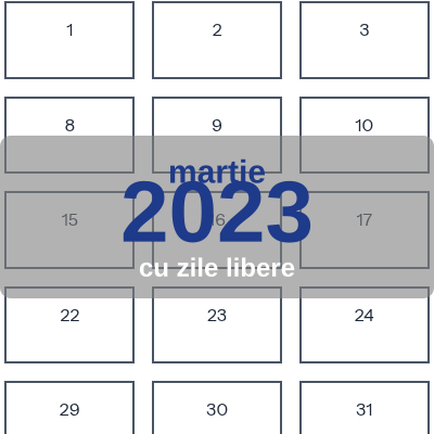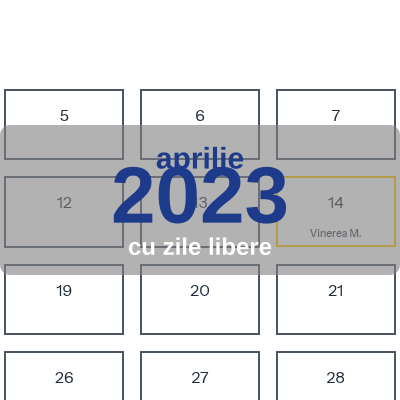 Calendarul oficial 2023 pentru România include toate zilele libere legale, sărbătorile creștin-ortodoxe și evenimentele importante. Descoperă când pică Paștele în 2023, Rusaliile, Floriile și toate sărbătorile religioase. Planifică-ți concediile și descarcă PDF-ul gratuit.
