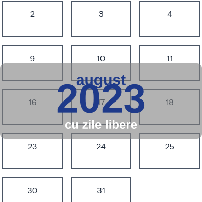 Alege un an pentru a vedea calendarul complet, sărbătorile creștin ortodoxe și zilele libere legale.