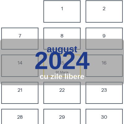 Vezi lista completă a zilelor libere legale din România pentru 2024în secțiunea noastră dedicată. Include sărbători naționale și religioase.