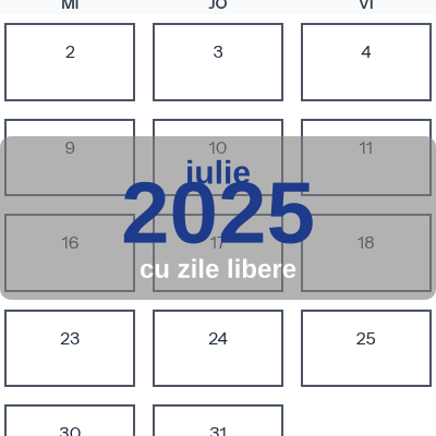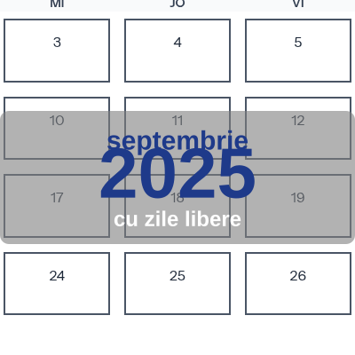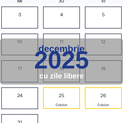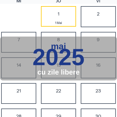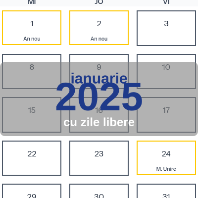 Vezi lista completă a zilelor libere legale din România pentru 2025în secțiunea noastră dedicată. Include sărbători naționale și religioase.